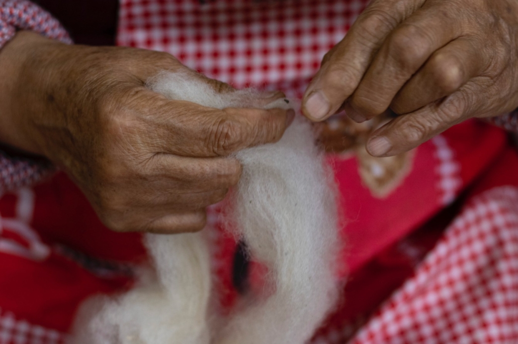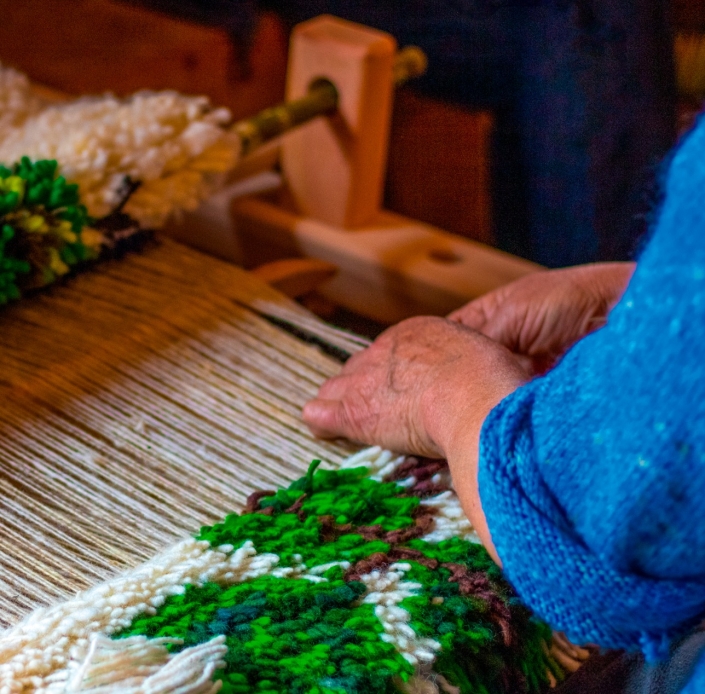 Transformamos la lana de oveja en tejidos únicos que abrazan tu piel y decoran tus espacios con amor y tradición ancestral.